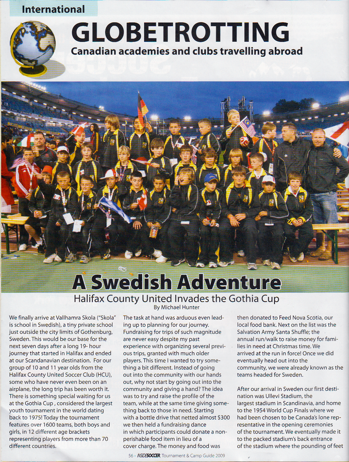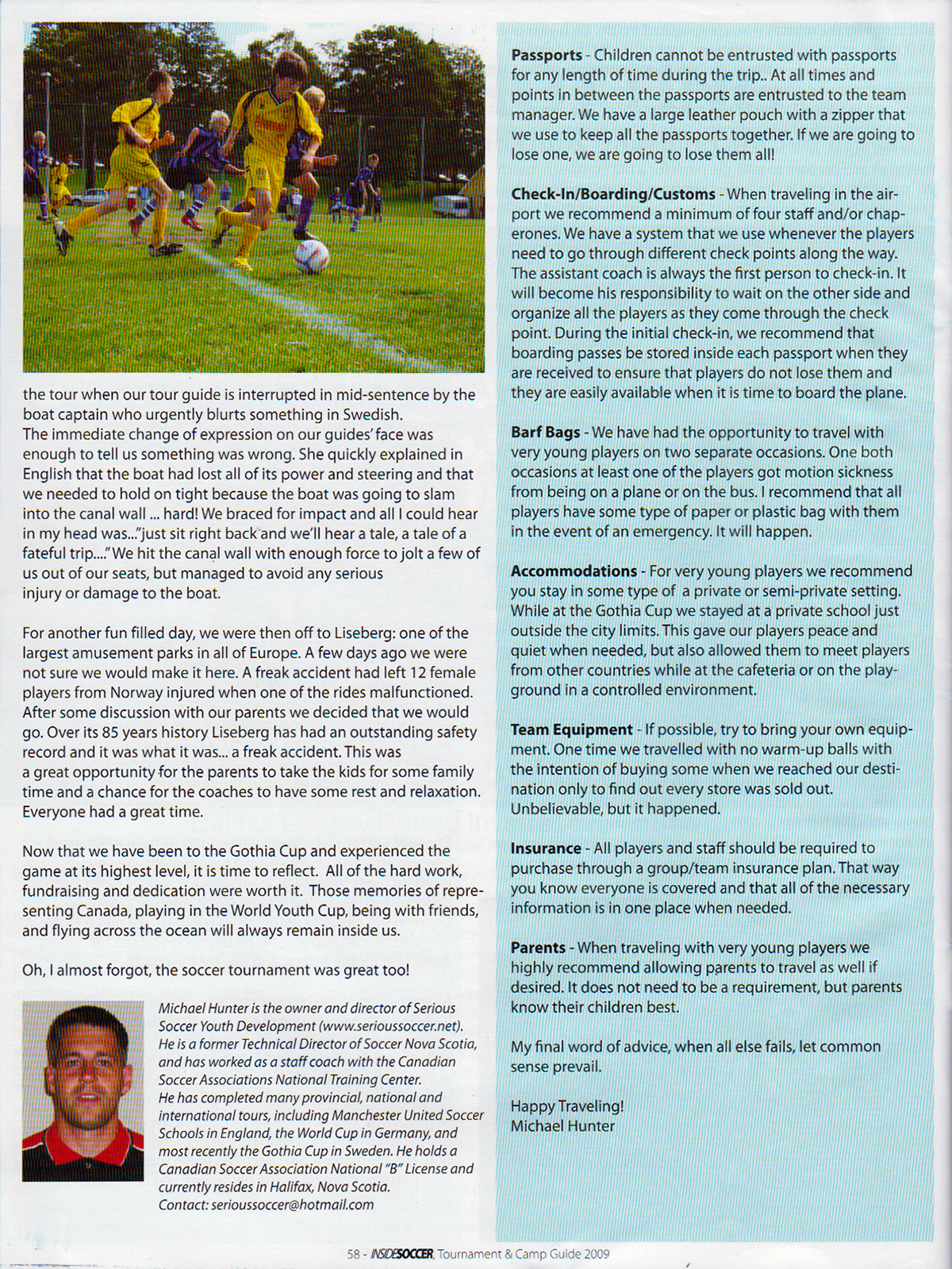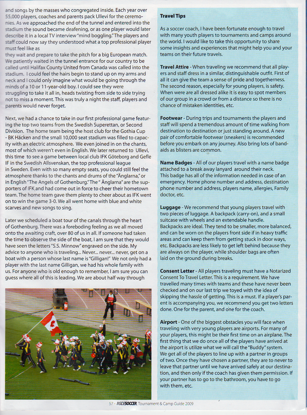 A magazine article I wrote for Inside Soccer Magazine in 2009 detailing out trip to the Gothia Cup, Sweden along with some travel tips for teams and coaches.